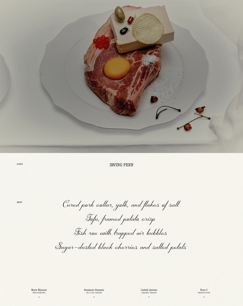 „Dieses Bild wurde vom Fotografen Irving Penn inspiriert. Er war ein Meister des Stilllebens und sein Ansatz hat mich immer stark beeinflusst. Ich liebe die Art, wie er Objekte im Studio auf das Wesentliche reduziert fotografierte. Das Geniale liegt in der Unvollkommenheit und darin, jedes Motiv wie eine Ikone zu behandeln. Ich versuche, meine Arbeit ähnlich anzugehen: Jedes Objekt, das ich fotografiere, trägt seine eigene Geschichte in sich und kann für sich allein stehen.“