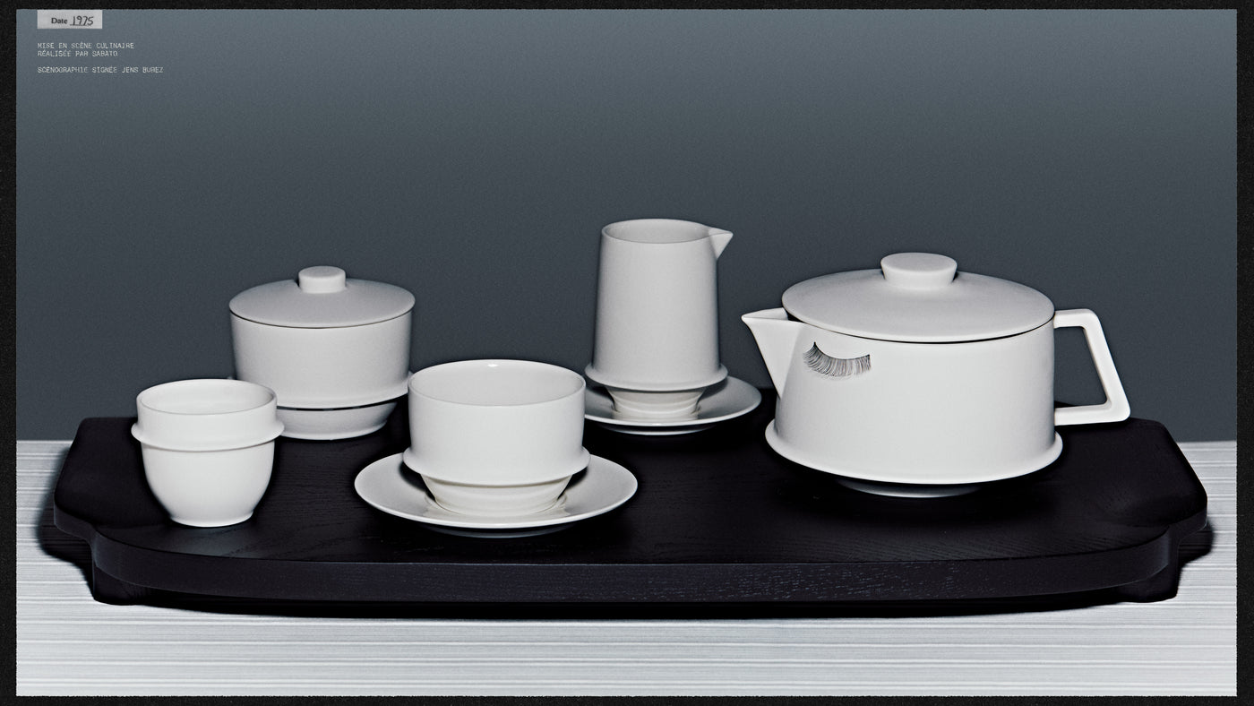 Marie: „Das erste Shooting war in der Absurdität verwurzelt. Diesmal wollten wir mehr Leichtigkeit und Fantasie einbringen. Eine Teekanne mit Wimpern, ein kleiner Fisch in einer Vase – kleine Details, die eine Geschichte erzählen. Ich liebe Bilder, bei denen eine subtile surreale Geste genügt, um den Betrachter in eine andere Welt zu versetzen. Und trotz dieser Verspieltheit fügt es sich immer noch nahtlos in die Serax-Ästhetik ein.“