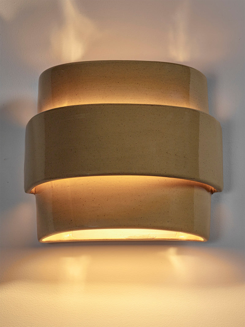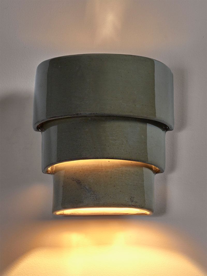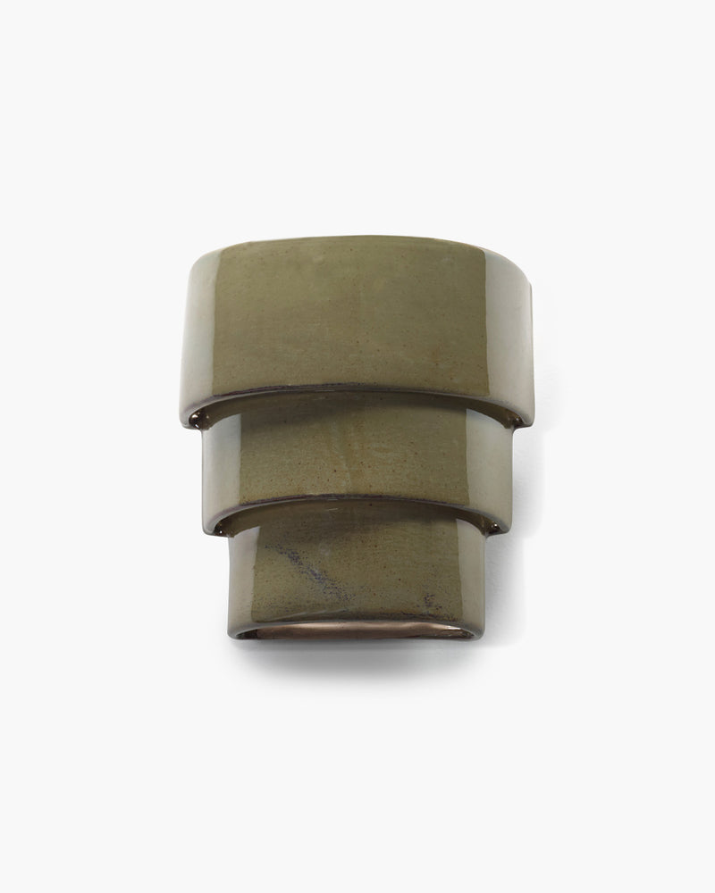 Bei der Einrichtung ihres Studios in Brüssel entschied sich Anita Le Grelle, keine Spots über ihrem Arbeitstisch zu installieren. Sie nahm eine bunte Sammlung von Schüsseln, Schalen und Töpfen aus ihrer Geschirrkollektion Terres de Rêves für Serax, bohrte Löcher hinein, stapelte sie übereinander und kombinierte sie mit einer Leuchte. Diese Idee baute sie weiter aus und so entstanden 3 einzigartige Pendelleuchten. Darüber hinaus kreierte Le Grelle auch Wandlampen aus Steinzeug, die aus verschiedenen Tonstreifen hergestellt wurden.