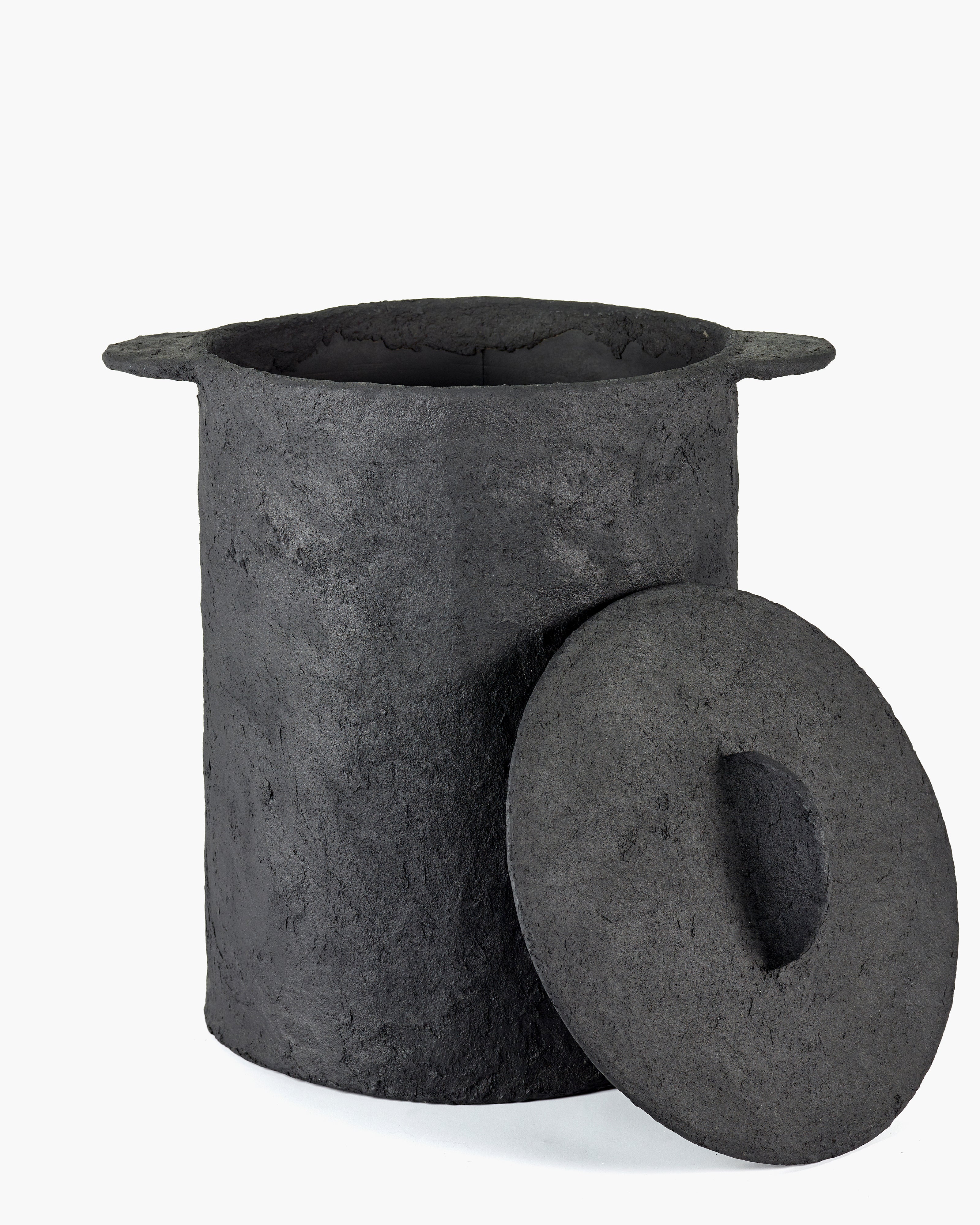 Korb mit Deckel + Leinensack schwarz Pappmaché Earth