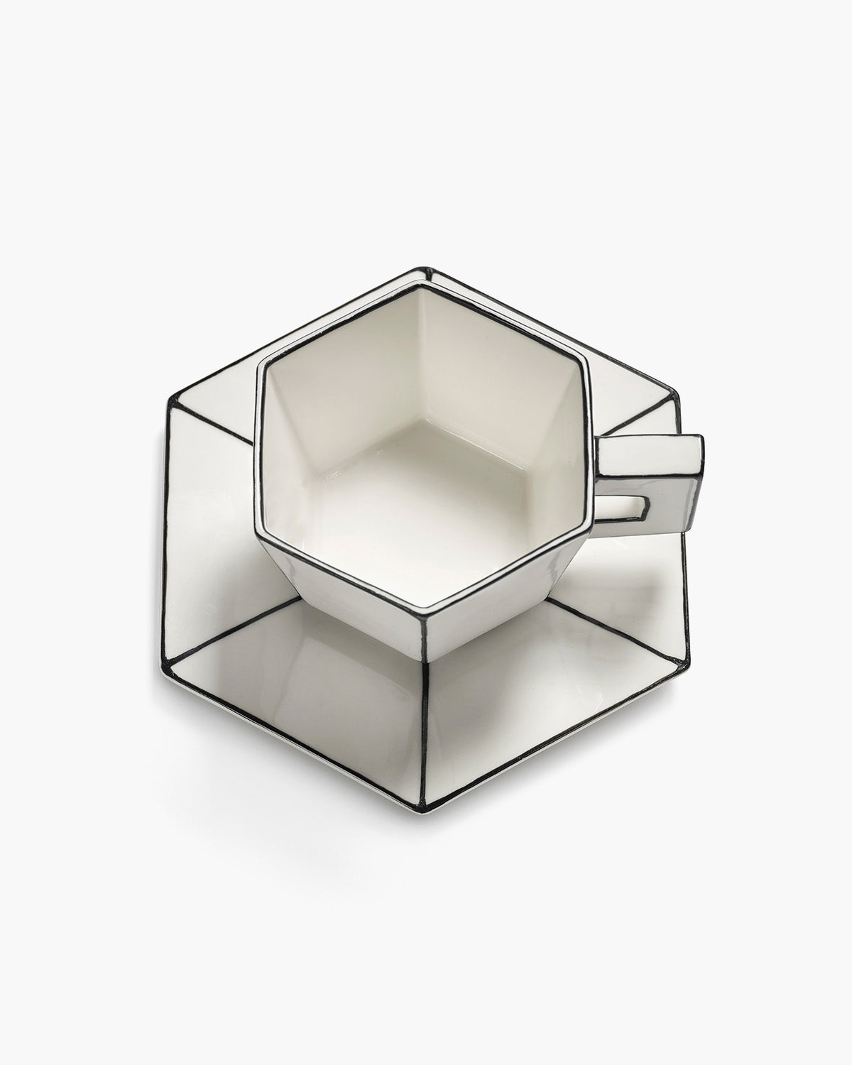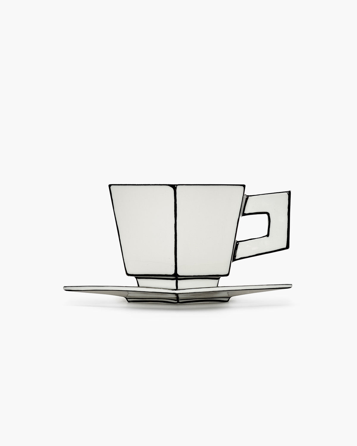 Taza de cappuccino con platillo blanco - negro Carte Blanche