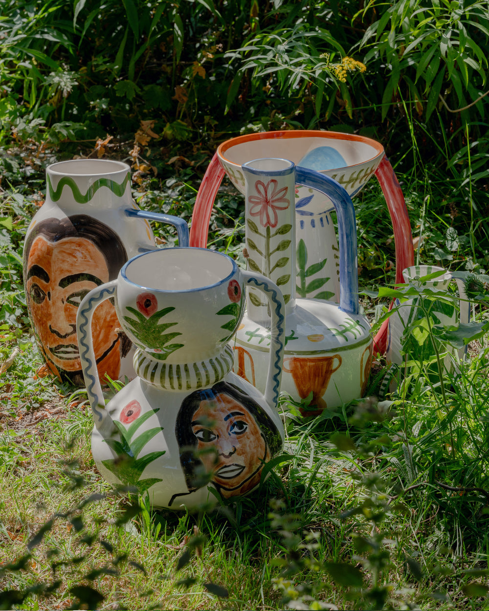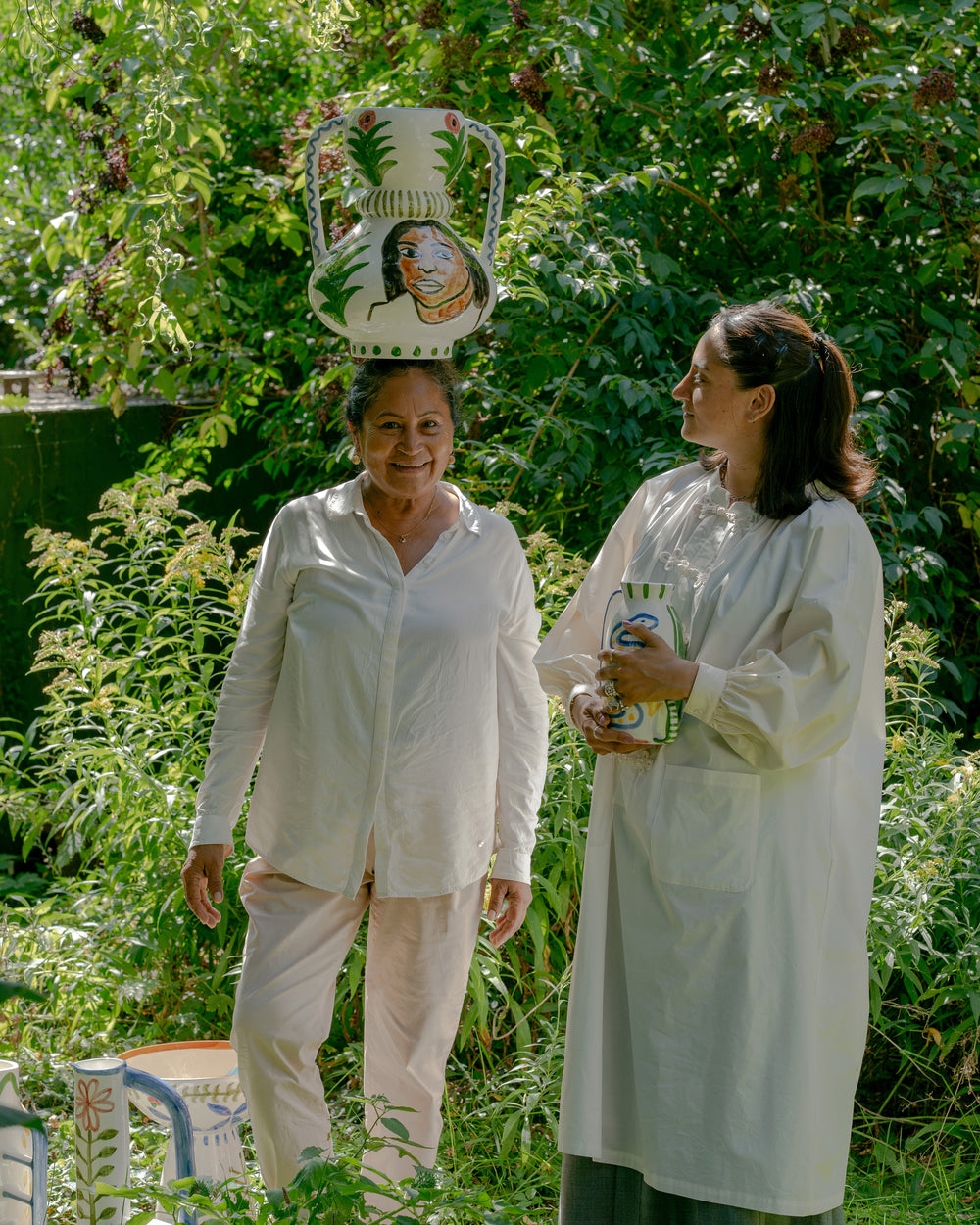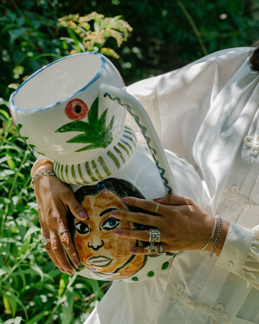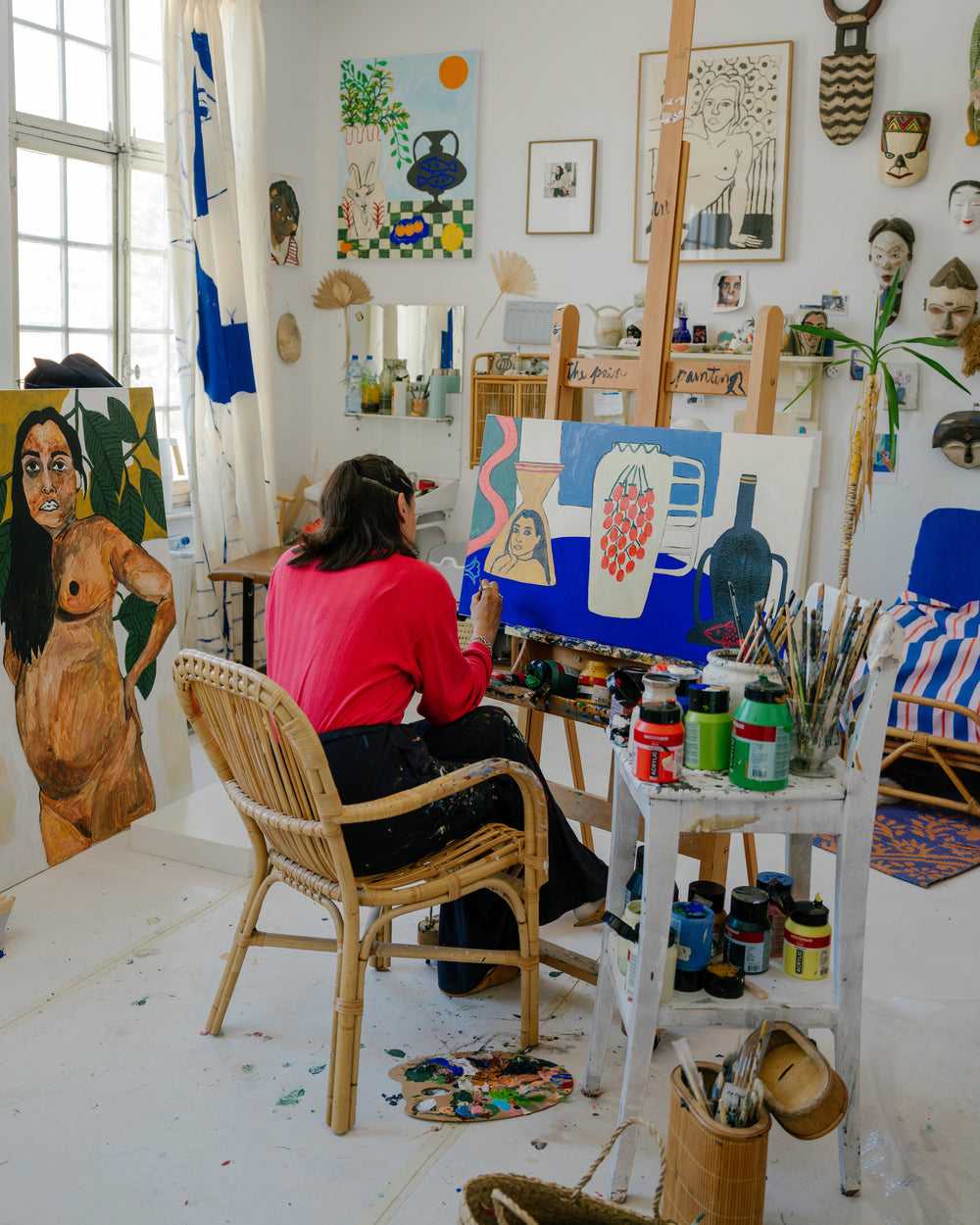 L’atelier ha un aspetto domestico, e non sorprende. Shirley dipinge ritratti di amici e conoscenti e, nei suoi quadri, crea attorno ai soggetti una ricchezza di oggetti casalinghi, dalle piante da appartamento alla ceramica. «Le piante sono indispensabili per me, perché rappresentano il mio legame con la foresta amazzonica», spiega. «Il resto proviene dai miei viaggi. Dal Giappone porto spesso ceramiche, dal Marocco piastrelle, e nei mercatini delle pulci di Parigi vado a caccia di curiosità.» Questi oggetti ispirano la ceramica fantasiosa dei suoi dipinti. Insieme a Serax, e su richiesta della sua gallerista Sofie Van de Velde, Shirley ha dato vita a questi vasi uno per uno. Così il cerchio si chiude.