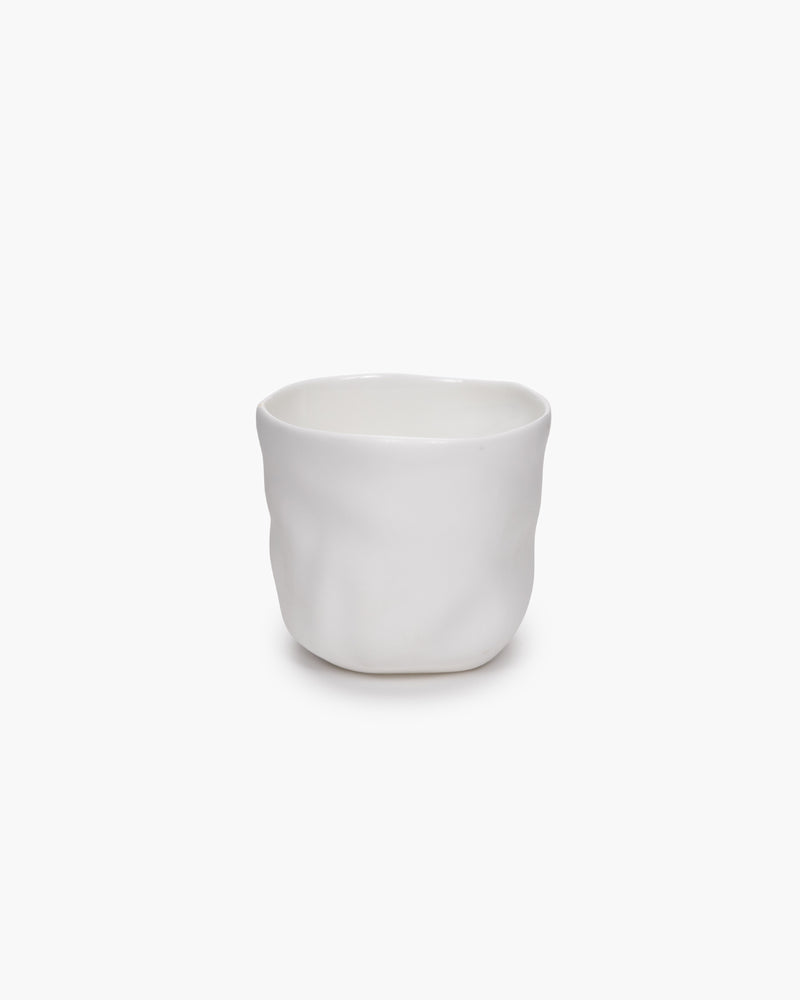 Bloemen: “De natuurlijke vormen van de collectie van Roos gaven ons tevens de creatieve ruimte om onze intuïtie te volgen. We wilden de witte kleur van de collectie doortrekken en een visuele sereniteit creëren waarin alles mooi in elkaar zou vloeien. De grenzen tussen de schalen, de kopjes en de stoffen zijn haast volledig verdwenen.”
