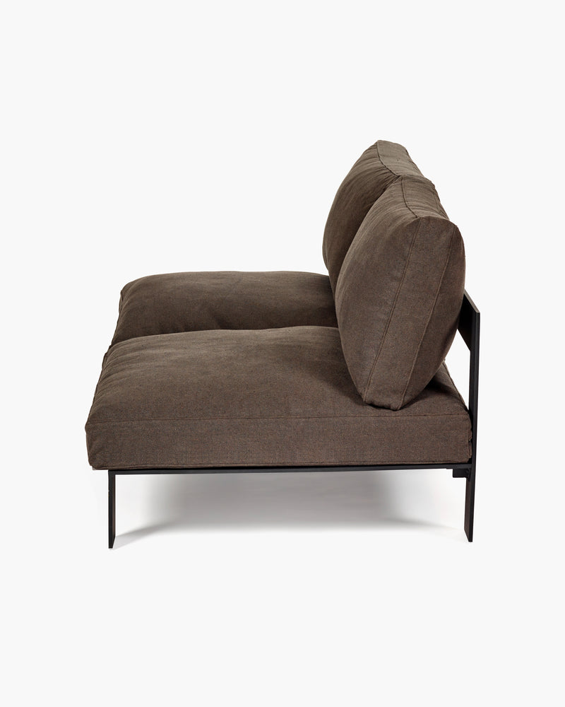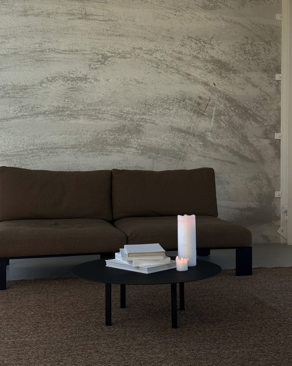 Een cocon van verstilling met een blinde voorgevel aan de straatkant en slaapvertrekken ondergronds: dat is wat Pieter vier jaar geleden voor zichzelf bouwde. De hele woning is vervaardigd uit sober beton. De grote ramen, die rijkelijk het zonlicht binnenlaten, zijn van hout. Om de rust te behouden, trok Pieter dat aardse kleurenpalet door in zijn meubilair. “Voor mijn meubilair koos ik voor kleurtonen die tussen het grijs van het beton en het bruin van de ramen zitten”, legt hij uit. “Die vond ik in materialen zoals hout, riet en leer. Het is verstandig om op voorhand je palet samen te stellen, maar toegegeven: zo berekend was ikzelf ook niet. Het was een proces dat vier jaar duurde en eigenlijk nog steeds voortduurt. Een woning groeit organisch.”