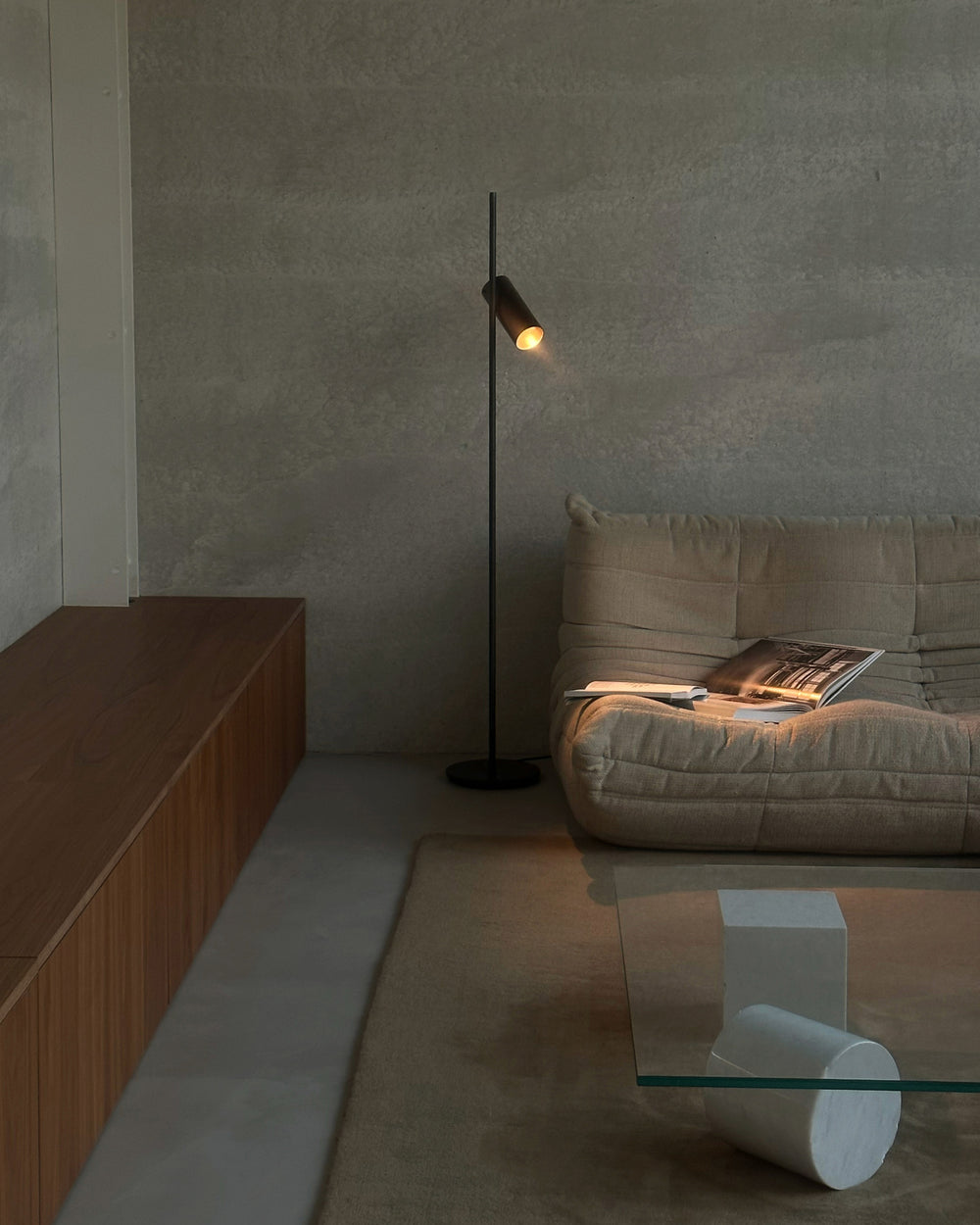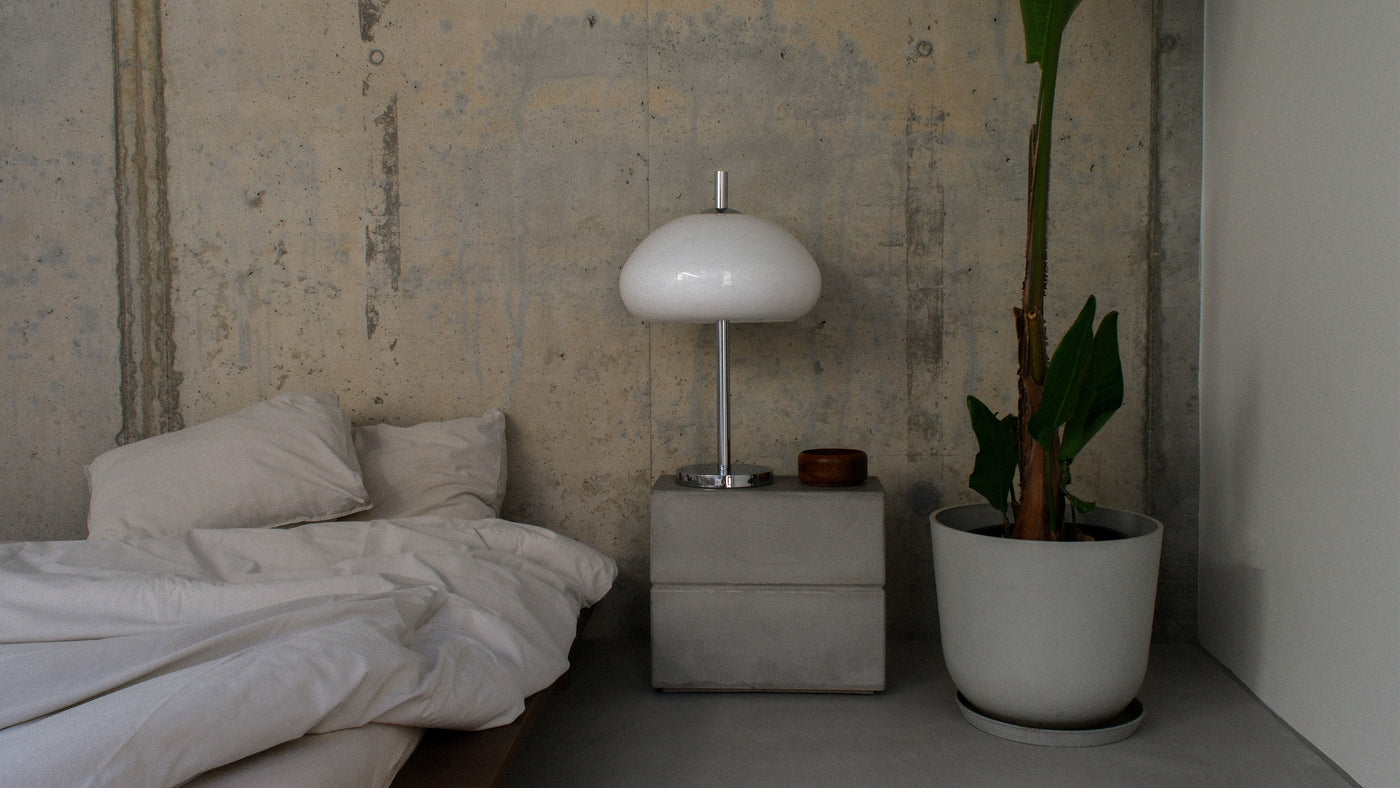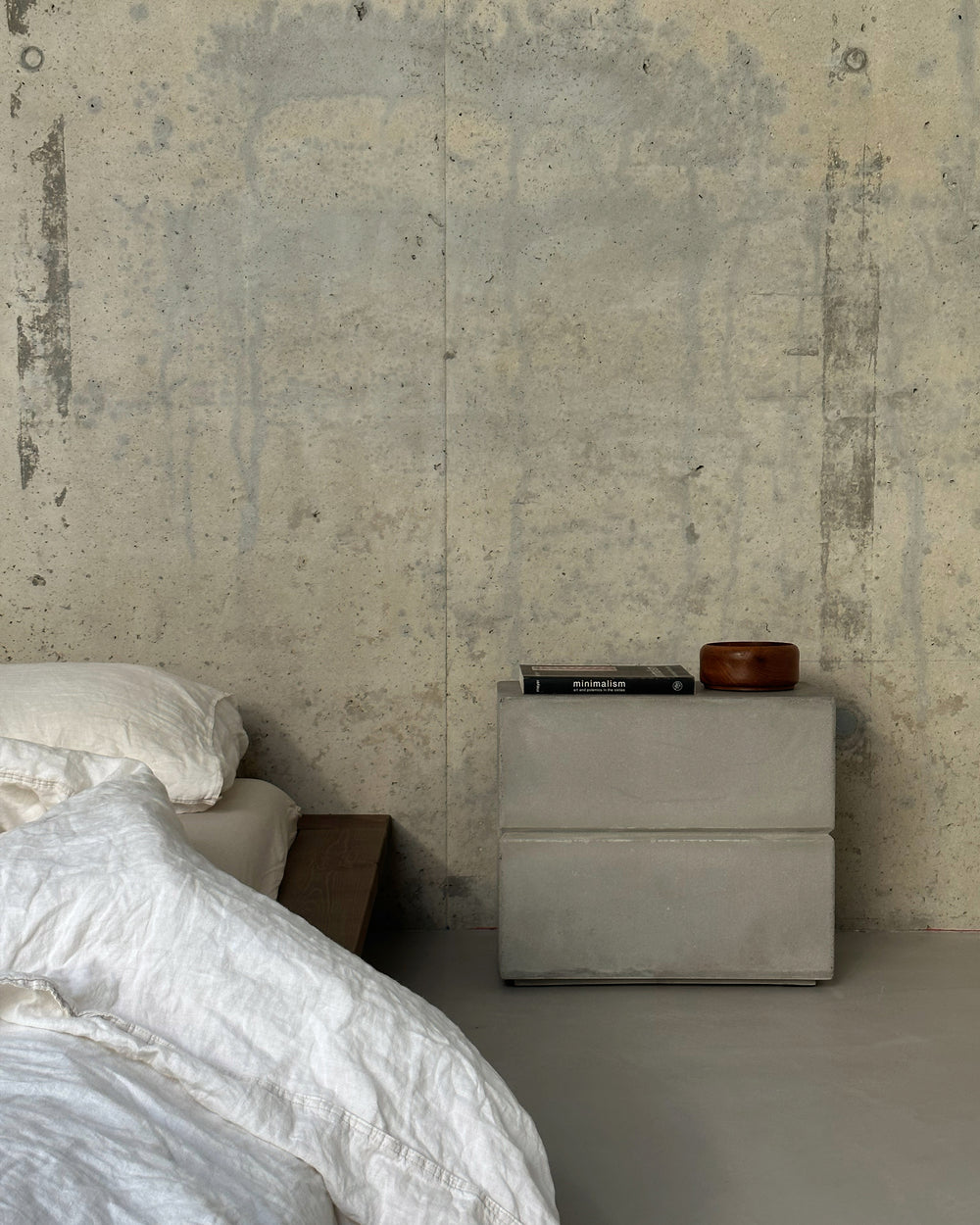 Het meest aanwezige materiaal in huis is beton. “Ik was op mijn zestiende, tijdens mijn studie architectuur in het middelbaar kunstonderwijs, al enorm aangetrokken tot beton en de minimalistische stijl van Tadao Ando”, vertelt hij. Ando is de Japanse architect van wereldfaam die bekendstaat om zijn zeer zware maar uiterst sobere betonnen architectuur. “Beton straalt een grote sereniteit uit en net zoals andere natuurlijke materialen is het erg tactiel. Bij design draait het niet enkel om het zicht, maar ook om de tastzin.” Zijn tip: kies voor sobere, natuurlijke materialen die je wil aanraken.