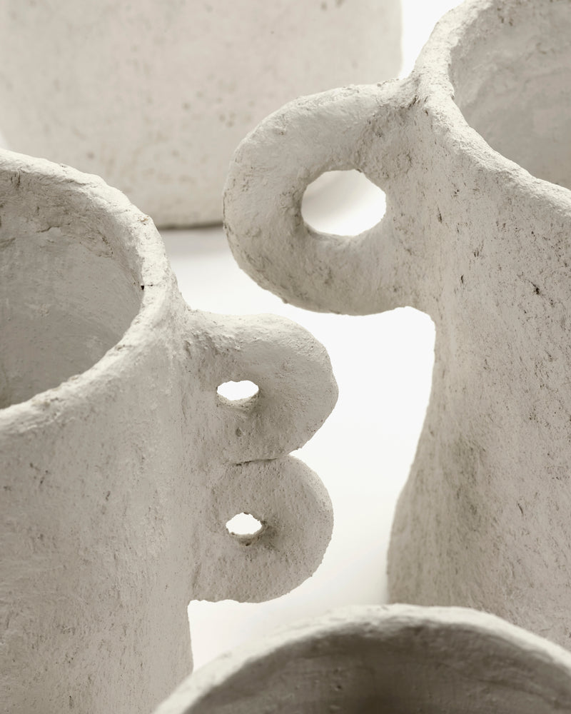 Vaas met oren S wit papier mache Earth