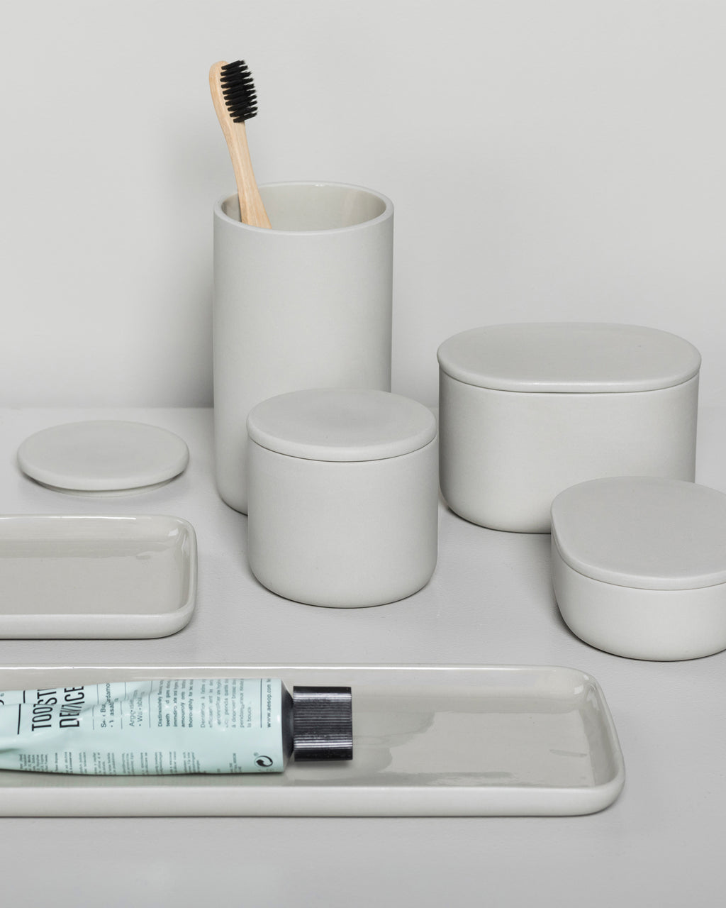 Potje met deksel rond L beige Cose